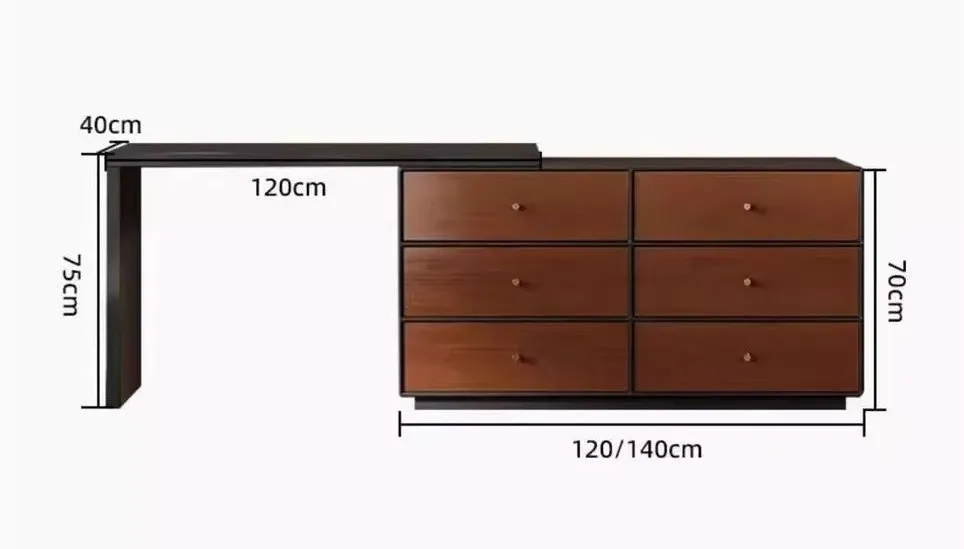 This medieval-style light luxury solid wood dressing table features an integrated cupboard design, combining retro aesthetics with practical storage functions, specifically tailored for bedroom spaces—especially corner layouts. It integrates a dressing countertop, a built-in cupboard, and six drawers, providing ample storage for cosmetics, skincare products, jewelry, and small bedroom items to eliminate clutter and save space. The solid wood material showcases natural grain, paired with medieval-style details (such as carved edges or classic hardware) and a light luxury finish, adding a retro yet elegant vibe to the bedroom. Its corner-friendly structure fits perfectly into unused corner spaces, making it ideal for users who appreciate retro style and need efficient storage solutions.