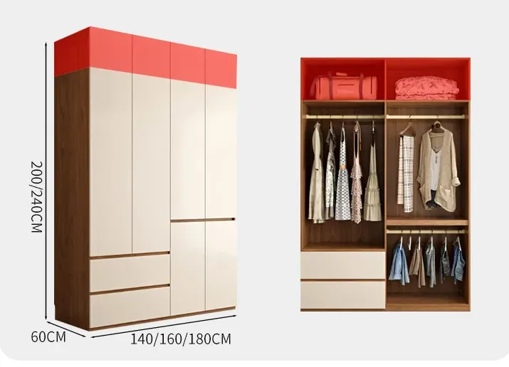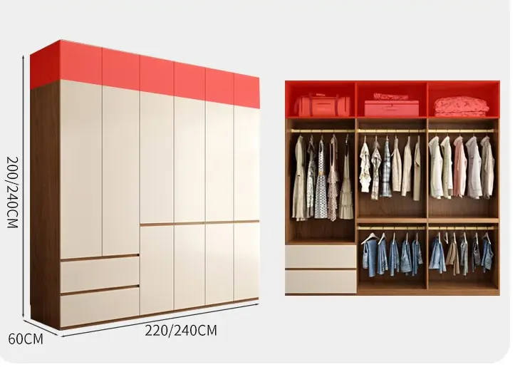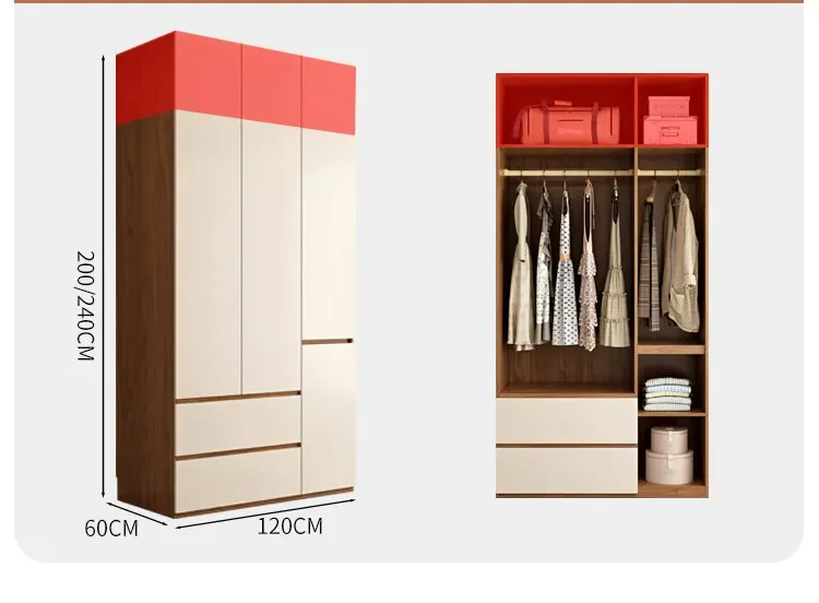 This multi-layer board wardrobe combines modern minimalist aesthetics with practical storage functions. Designed with a flat-door structure, it fits well in both small and large apartments, meeting the daily storage needs of most households. As a finished product, it requires no customization and is ready for immediate use, making it a hassle-free choice for bedroom storage.